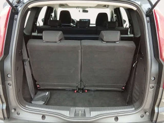 - Asientos traseros de tres plazas de tipo banco partido de orientación delantera con banqueta fija, respaldo abatible asimétrico y banqueta/respaldo plegable hacia delante